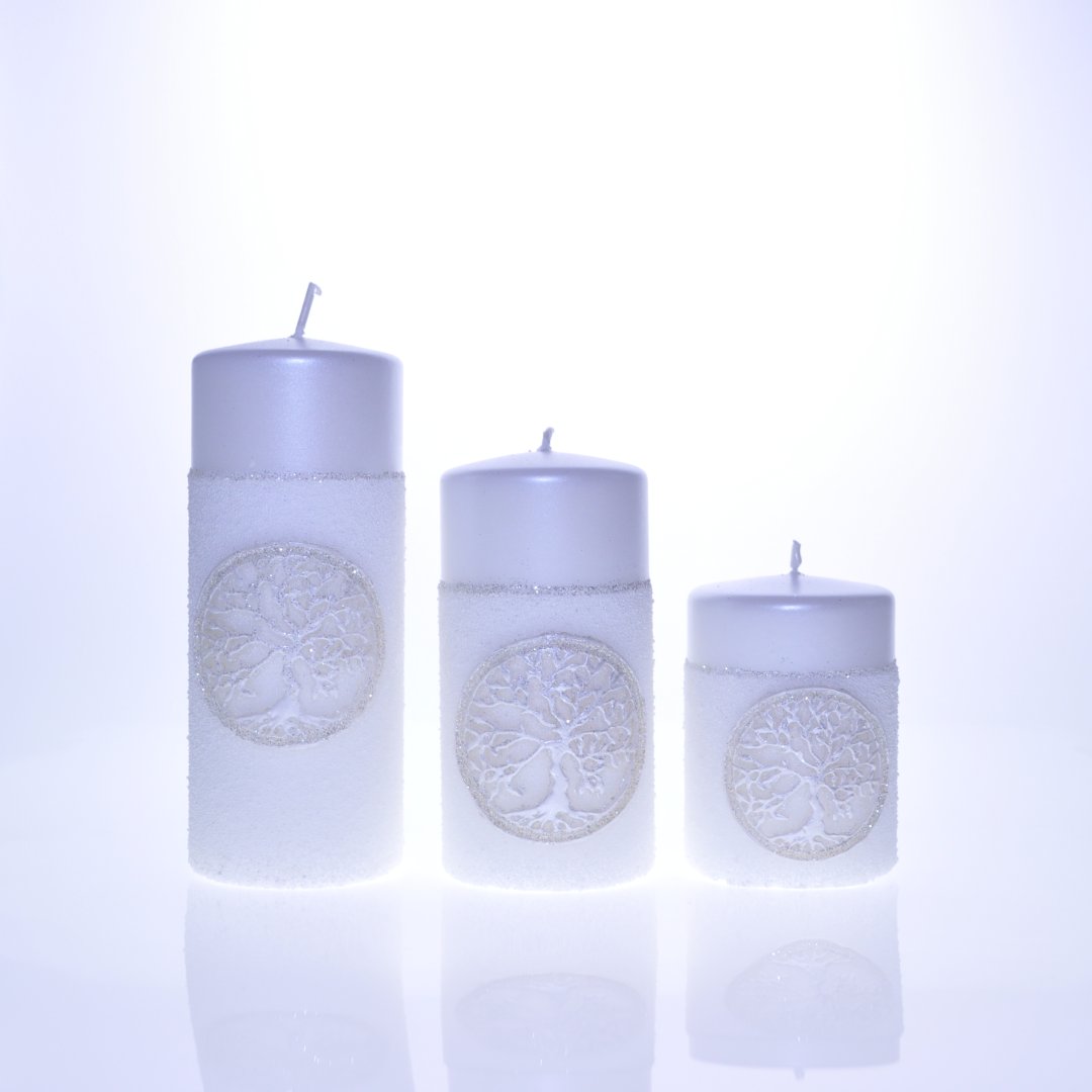 Ten limitowany zestaw trzech świec to propozycja dla miłośników eleganckiego designu i stonowanego stylu. Biała, matowo-połyskująca powierzchnia o wyczuwalnej strukturze sprawia, że świece nie tylko zdobią, ale także wprowadzają wyjątkowy klimat do każdego wnętrza.